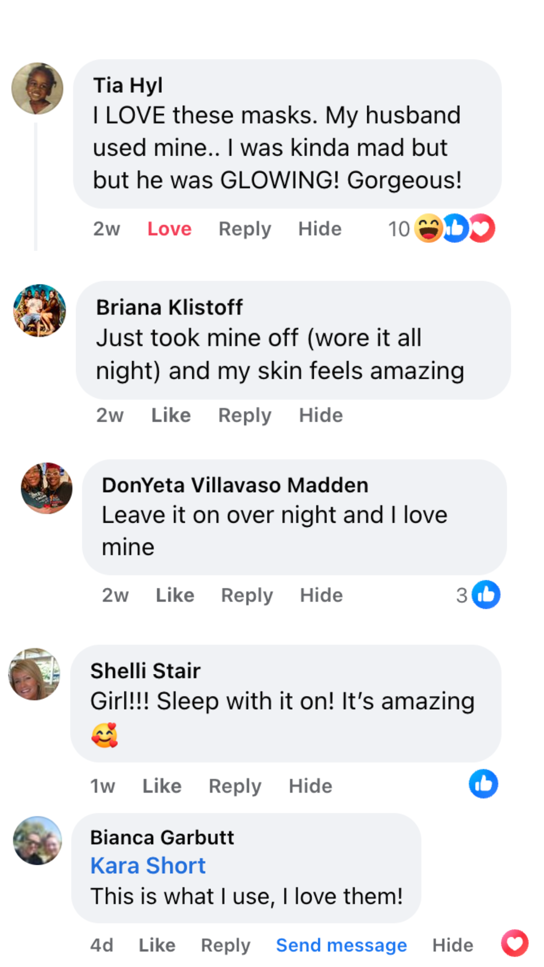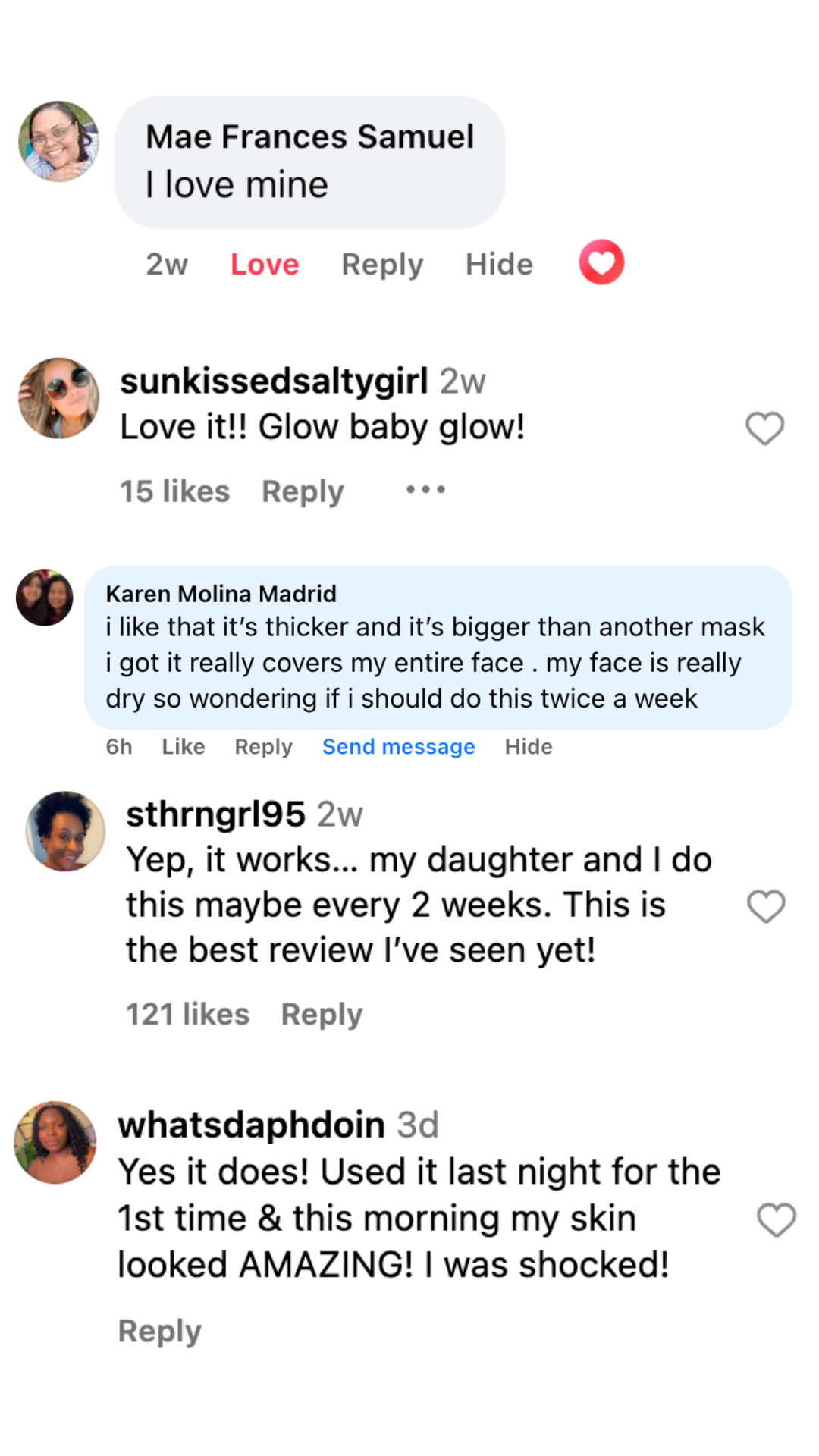 | Lasting Results-1 mask = 7 days of visible glow | ||